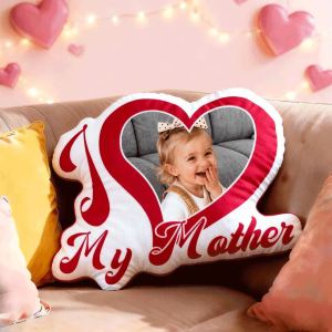 Custom Couple Photo Pillow – Red Heart-shaped Personalized Pillows For Mother’s Day Gift