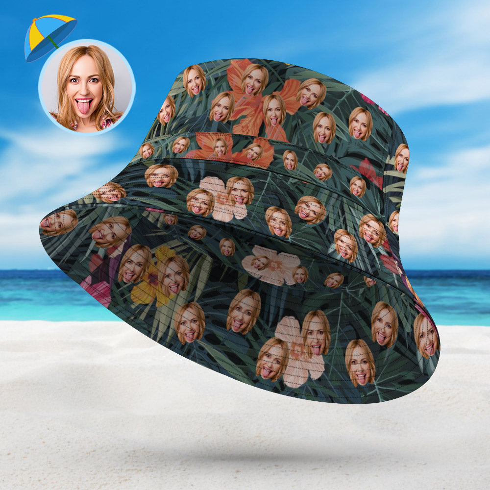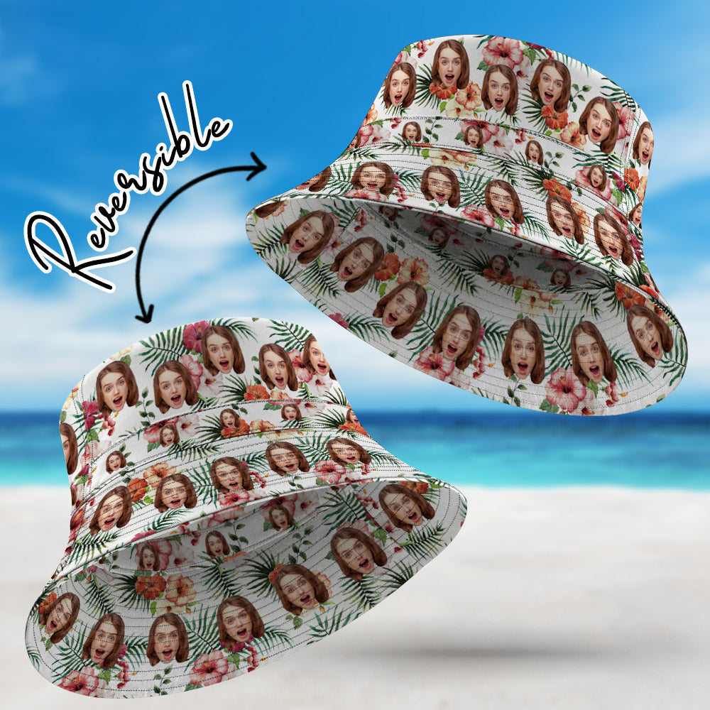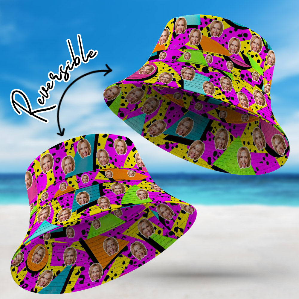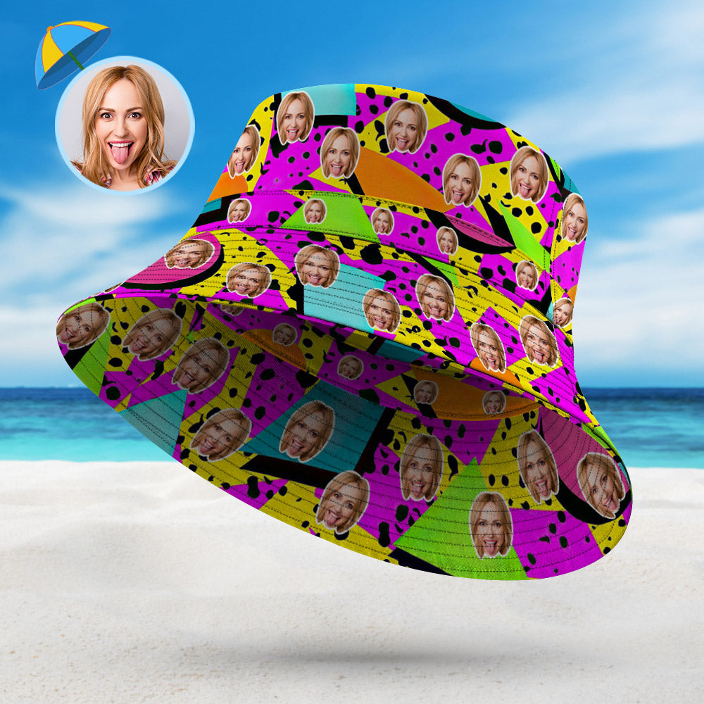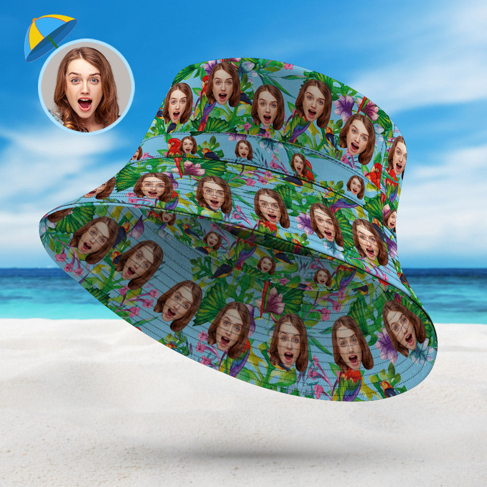 Custom Face Bucket Hat Unisex Personalized Photo Wide Brim Outdoor Summer Hats Light Blue Oil Painting Style