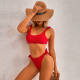 Bikini Solid Color High Waist Sexy Lace Up Split Women's Seaside Swimsuit