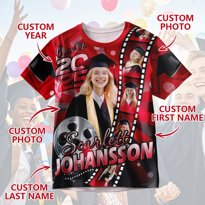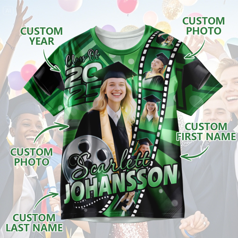 Custom 3D Graduation Shirt Personalized All Over Print Graduation T-Shirt with Name & Year