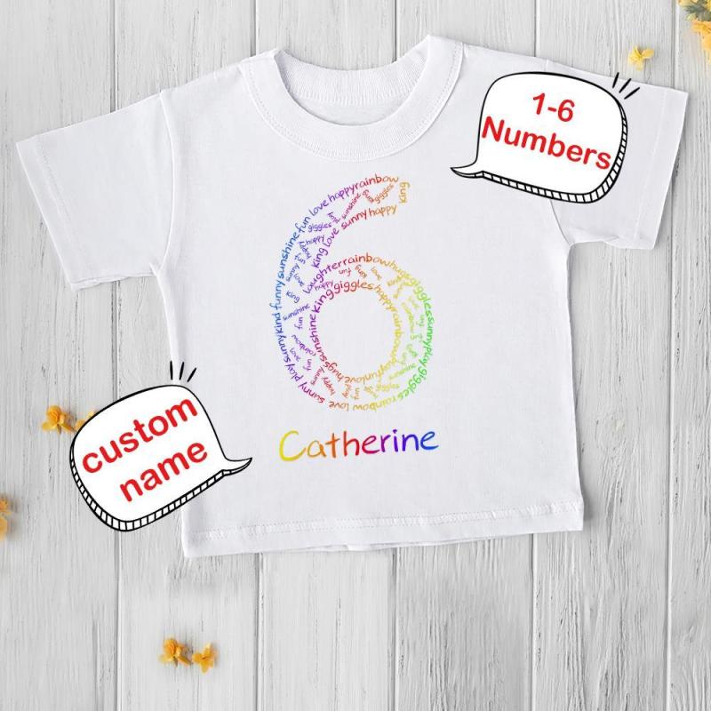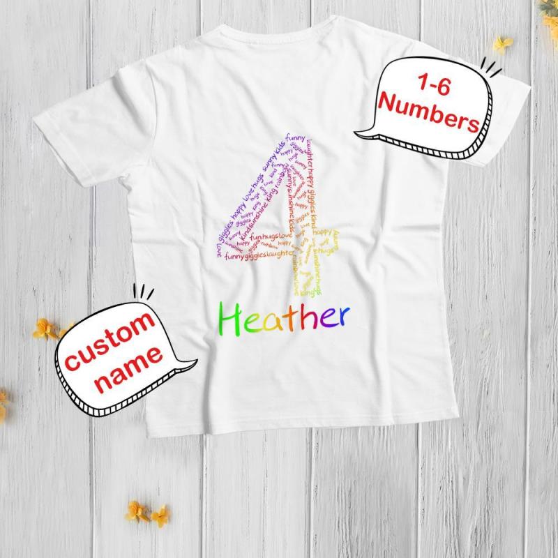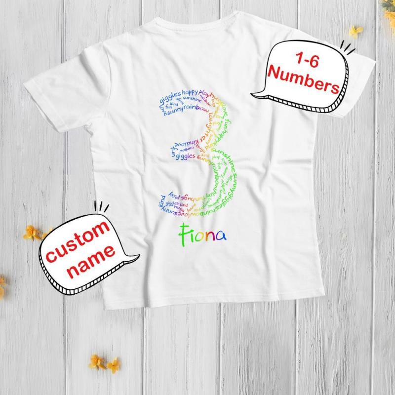 Custom Age 1-6 T-Shirt Double/Both side printing White Personalized Children Shirt Birthday Gift