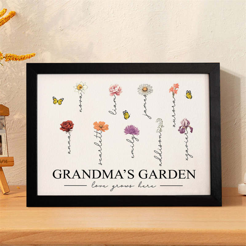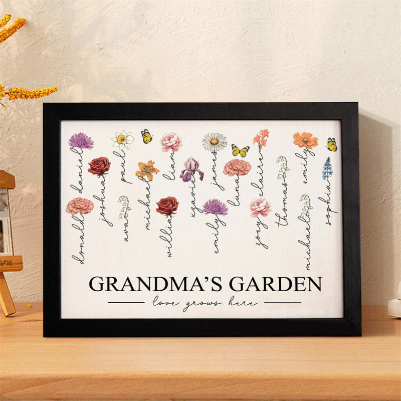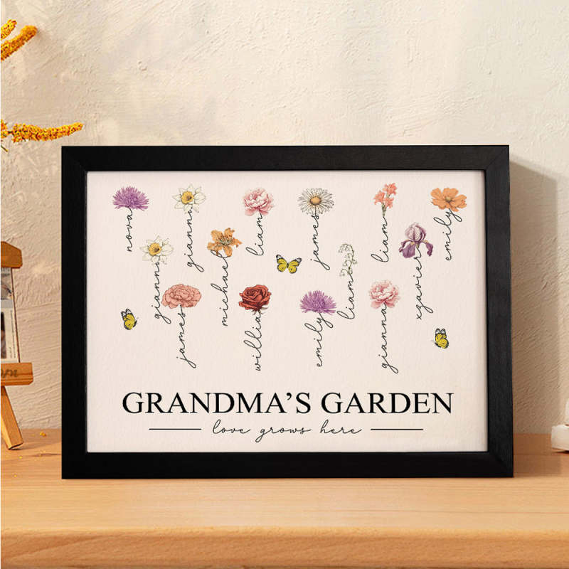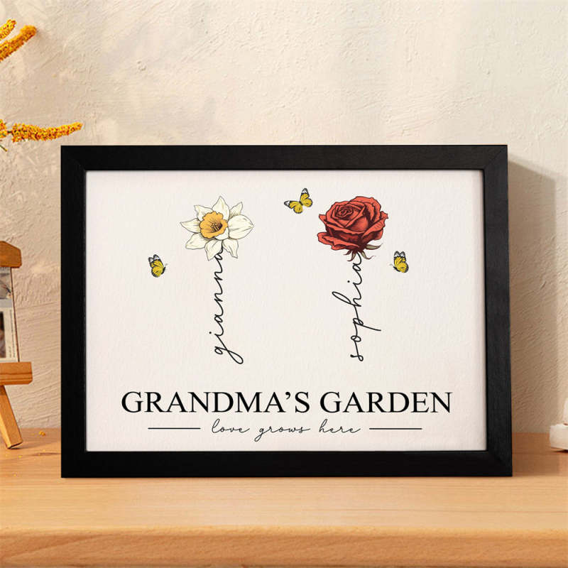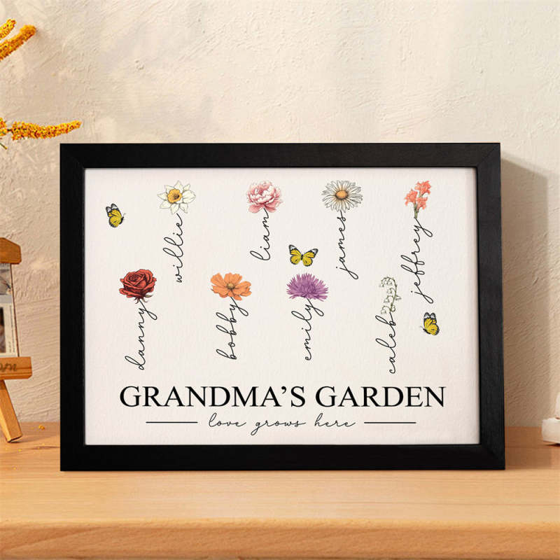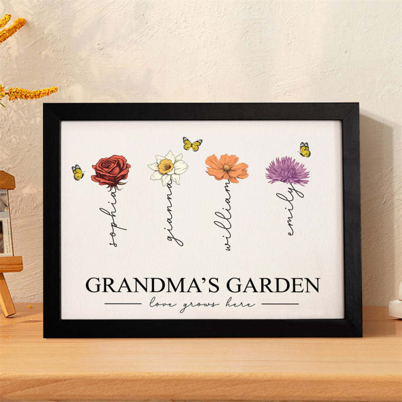 Custom Birth Month Flowers Garden With Grandkids Names Love Grows Here Personalized Wooden Photo Frame Mother's Day Gift