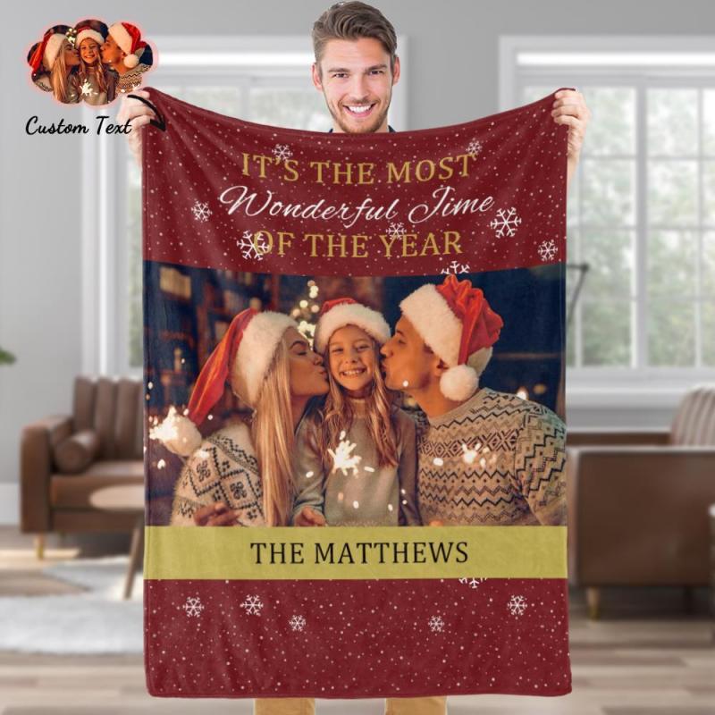 Custom Blanket Personalized Photo Blanket Christmas Gift For Family - Wonderful Time