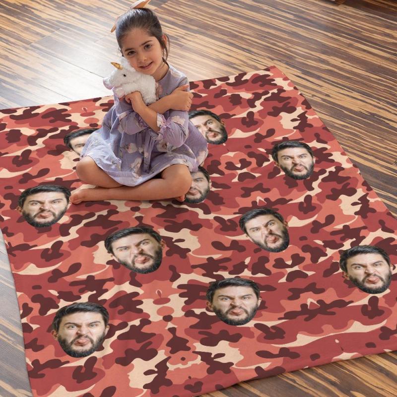 Custom Blanket Personalized Photo Camouflage Blanket For Lover - Light Coral