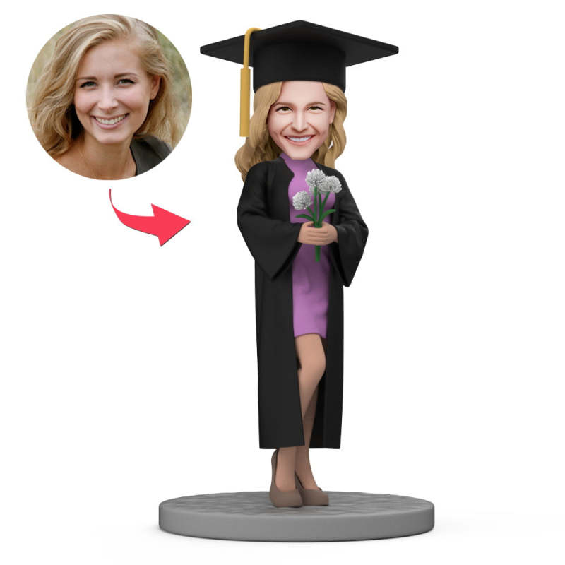 Custom Bobbleheads for Graduation Female with Flower