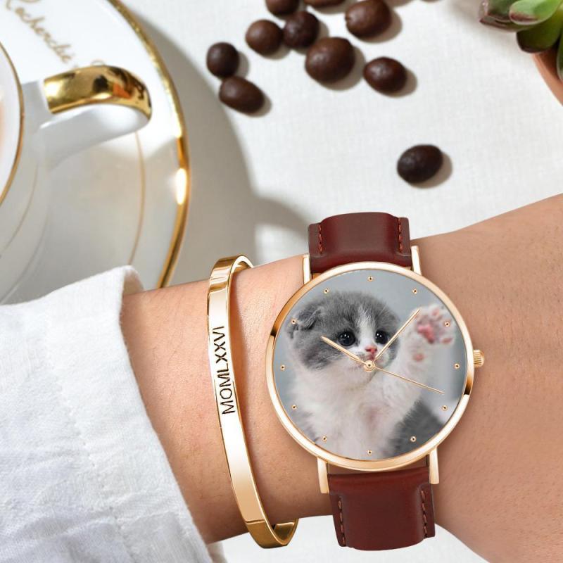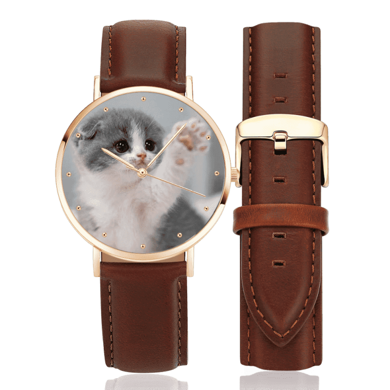Custom Engraved Rose Gold Photo Watch Brown Leather Strap For Women's Gift - 36mm