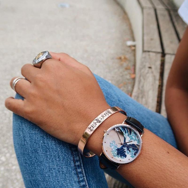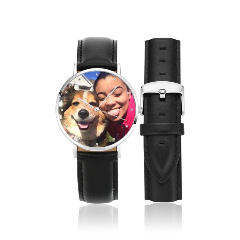 Custom Engraved Watch Color Black Leather Strap For Women's Gift - 36mm