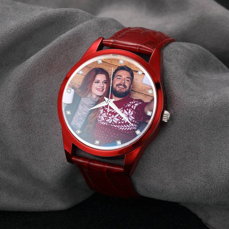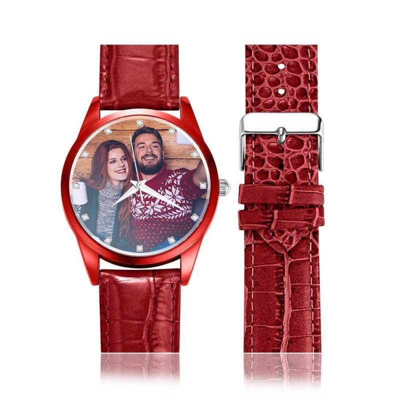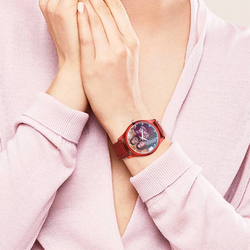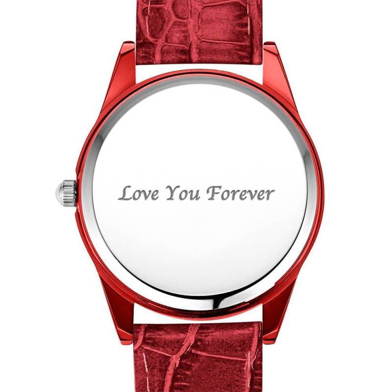 Custom Engraved With Red Or Blue Leather Strap For Women's Gift - 40mm
