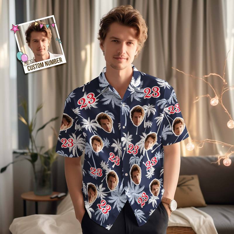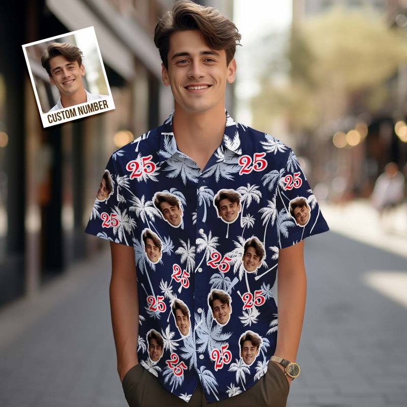 Custom Face And Number Birthday Hawaiian Shirts Red And White Coconut Tree Shirts
