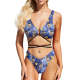 Custom Face Bikini Swimming Costume Women's Chest Strap Bathing Suit Personalized Photo Bikini Hawaiian Style Gift - Blue Daisy