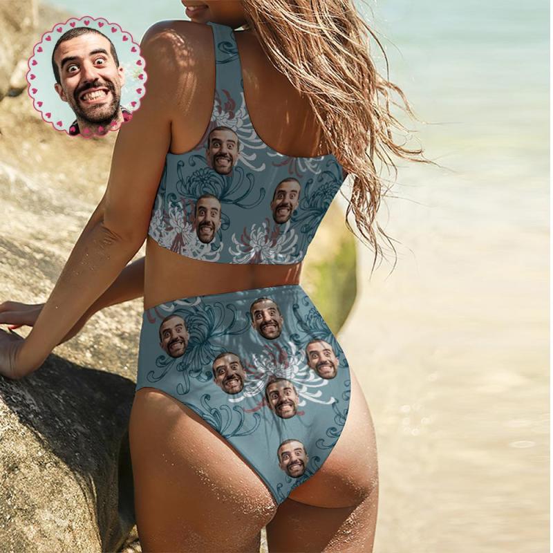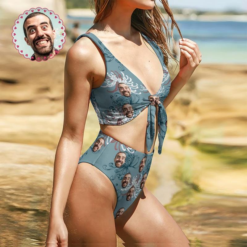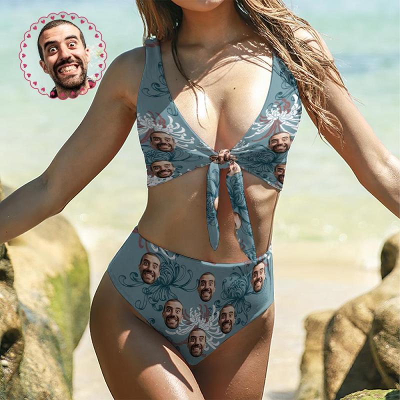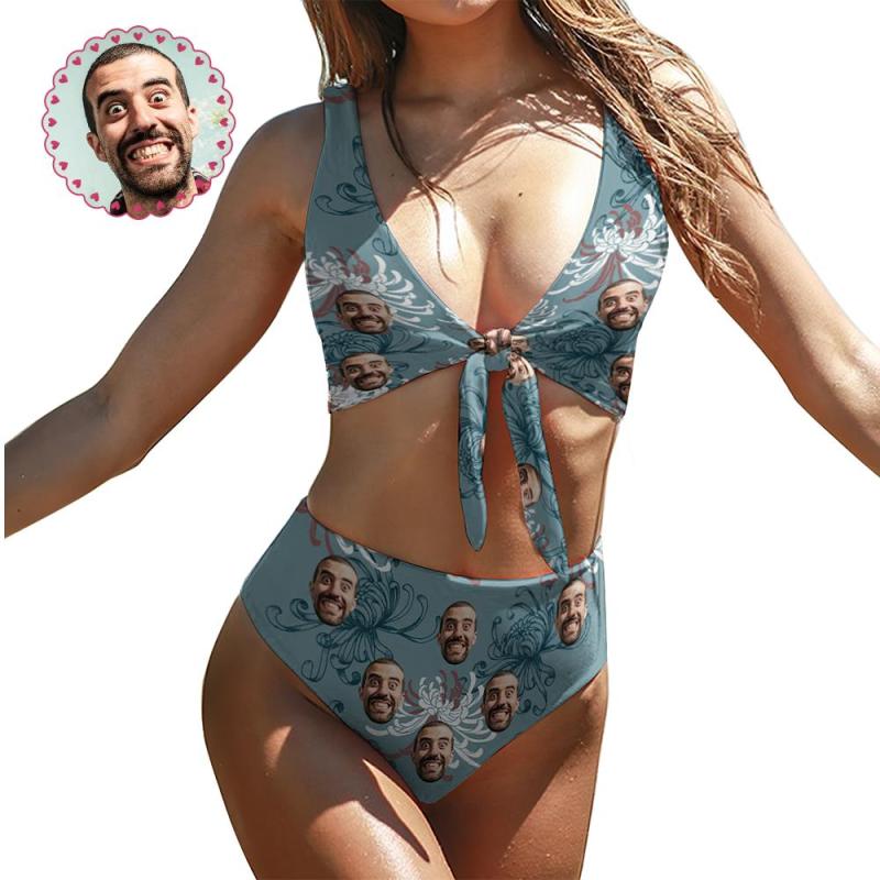 Custom Face Bikini Women's Chest Strap Bathing Suit Personalized Photo Bikini - Chrysanthemum