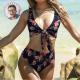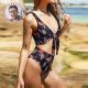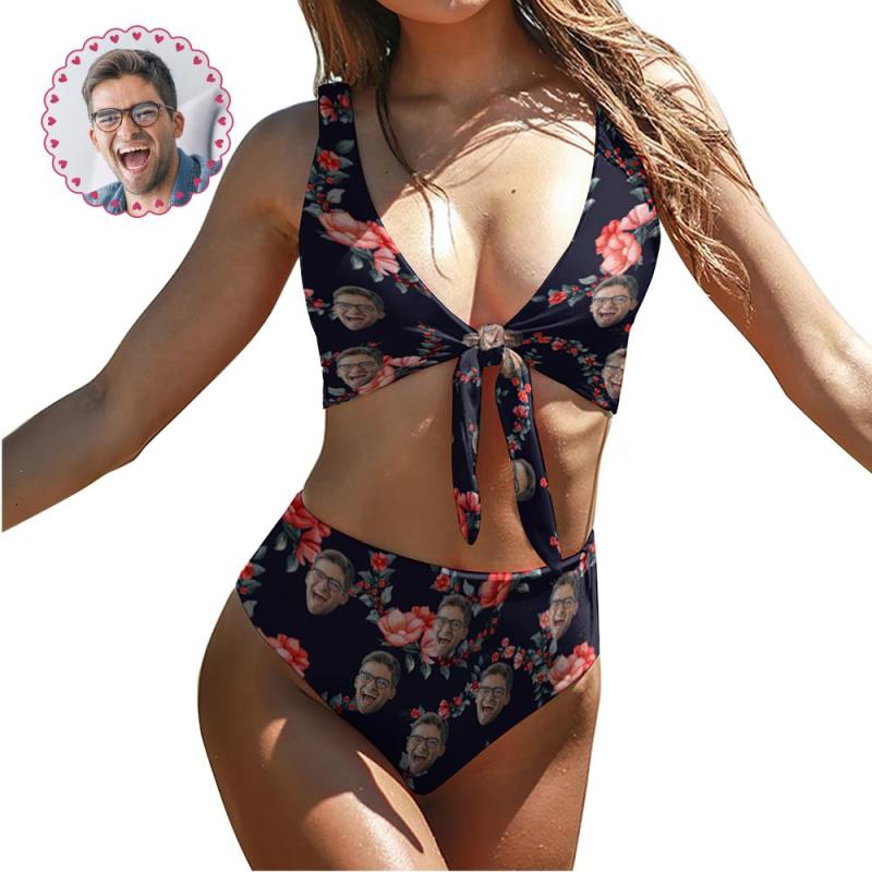 Custom Face Bikini Women's Chest Strap Bathing Suit Personalized Photo Bikini Anniversary Gift - Red Flower