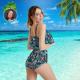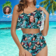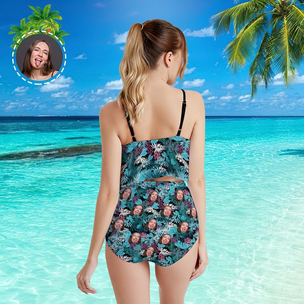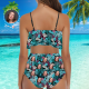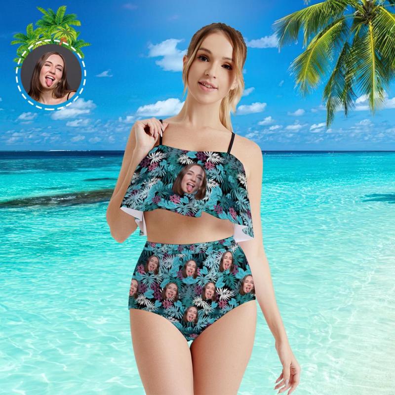 Custom Face Bikini Women's Ruffle Summer Bikini High Waisted Bathing Suits Gift For Her - Coulorful Leaves