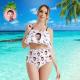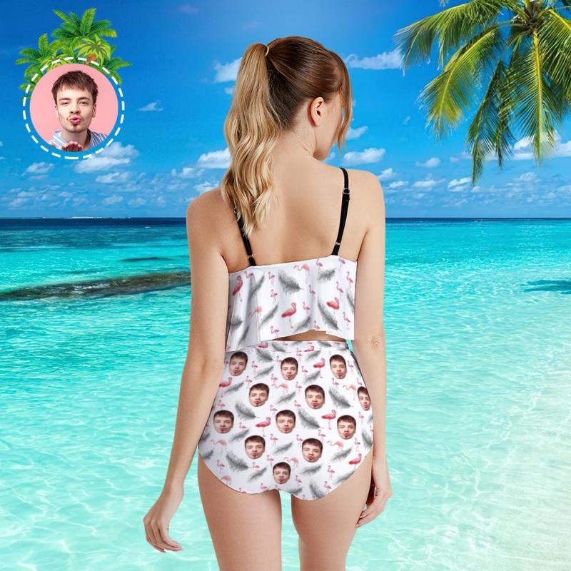 Custom Face Bikini Women's Ruffle Summer Bikini High Waisted Bathing Suits Gift For Her - Feather
