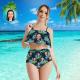 Custom Face Bikini Women's Ruffle Summer Bikini High Waisted Bathing Suits Gift For Her - Leaves