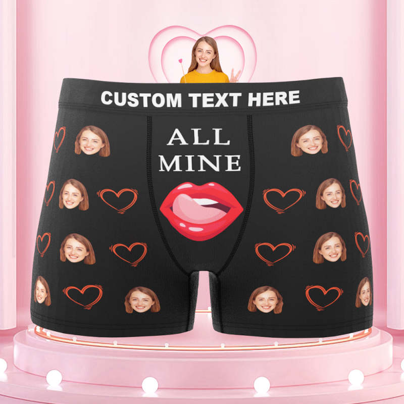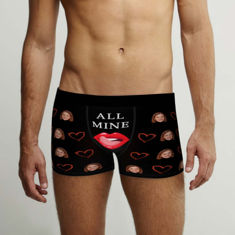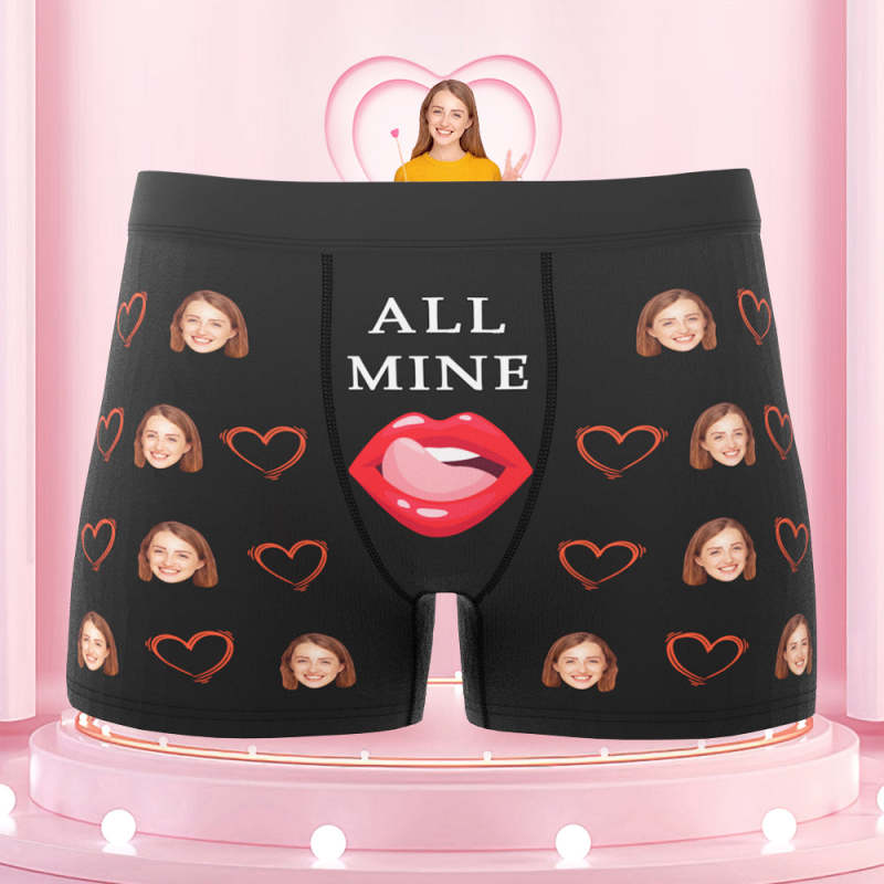 Custom Face Boxers Briefs Personalized Men's Underwear Love Heart Lips Briefs With Photo - ALL MINE