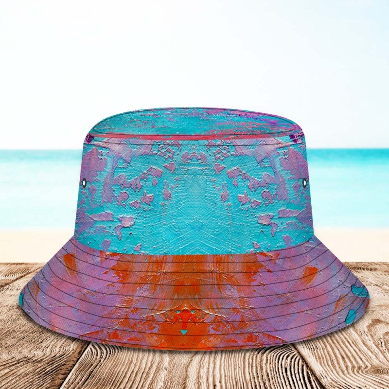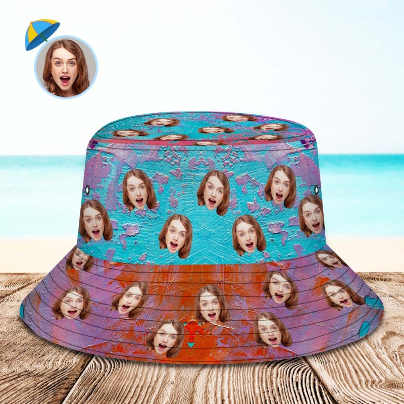 Custom Face Bucket Hat Unisex Personalized Wide Brim Outdoor Summer Hats Blue and Orange Oil Painting Style