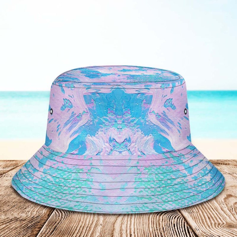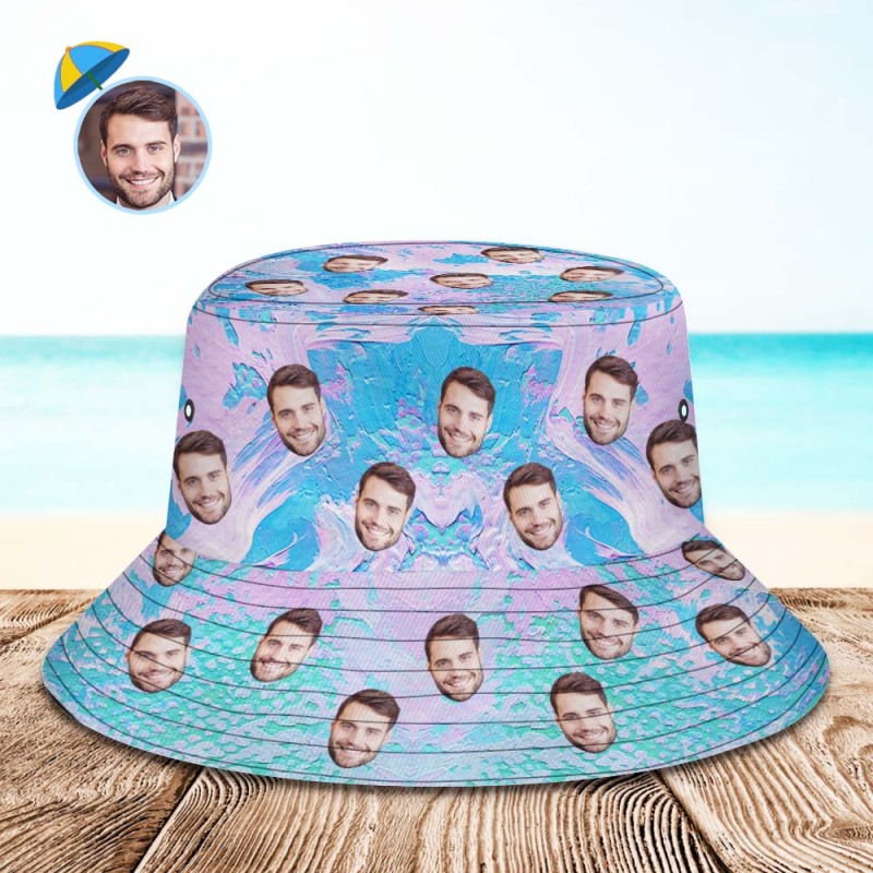 Custom Face Bucket Hat Unisex Personalized Wide Brim Outdoor Summer Hats Blue and Pink Oil Painting Style