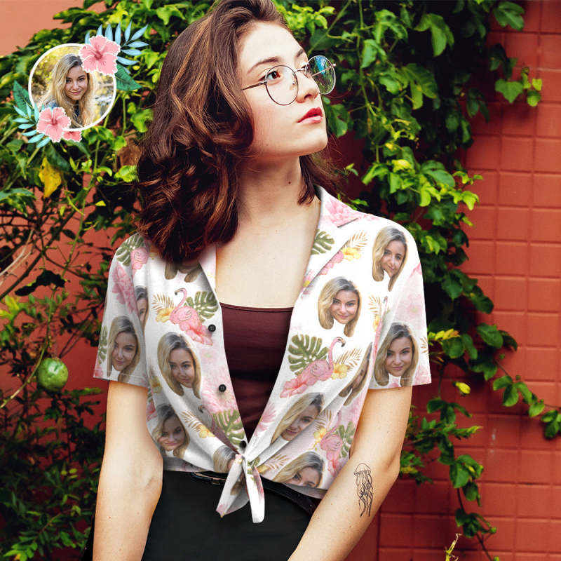Custom Dog Face Hawaiian Shirts Pink Flamingo Photo Hawaiian Shirt for Pet Owner