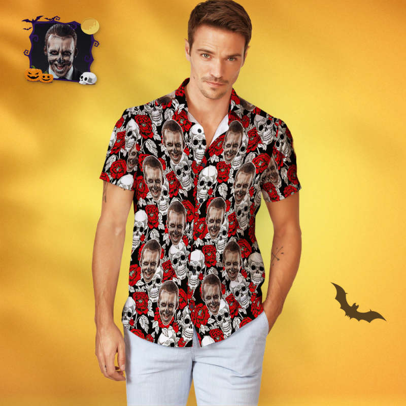 Custom Face Men Hawaiian Shirts Personalized Halloween Hawaiian Shirts Skull and Roses