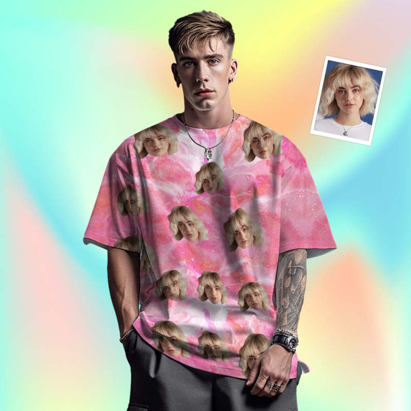 Custom Face Men's T-shirt Personalized Photo Funny Color ink T-shirt Gift Pink