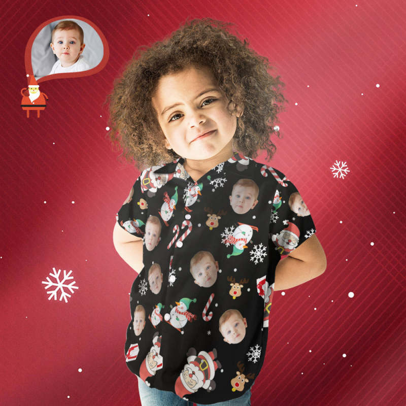 Custom Face Personalized Kid's Christmas Hawaiian Shirt Snowman Skiing Candy Cane Holiday Gifts