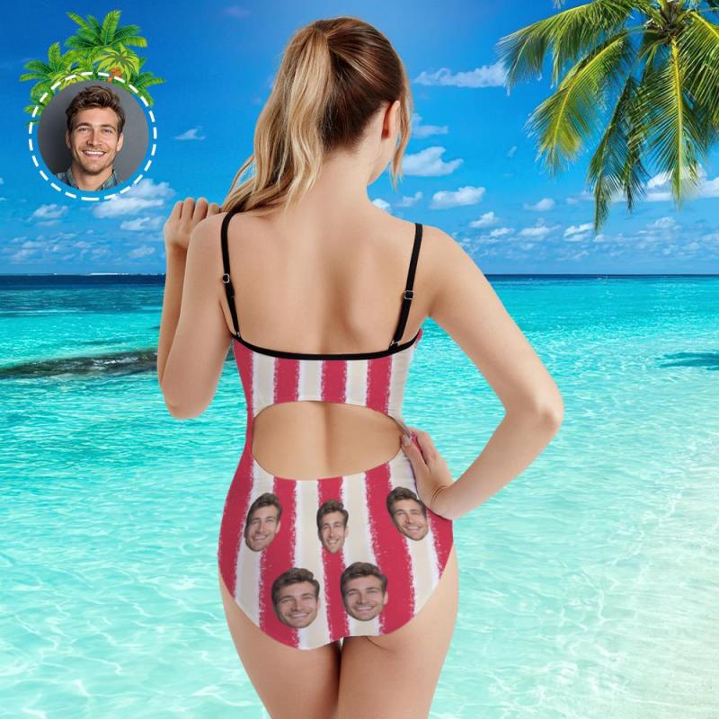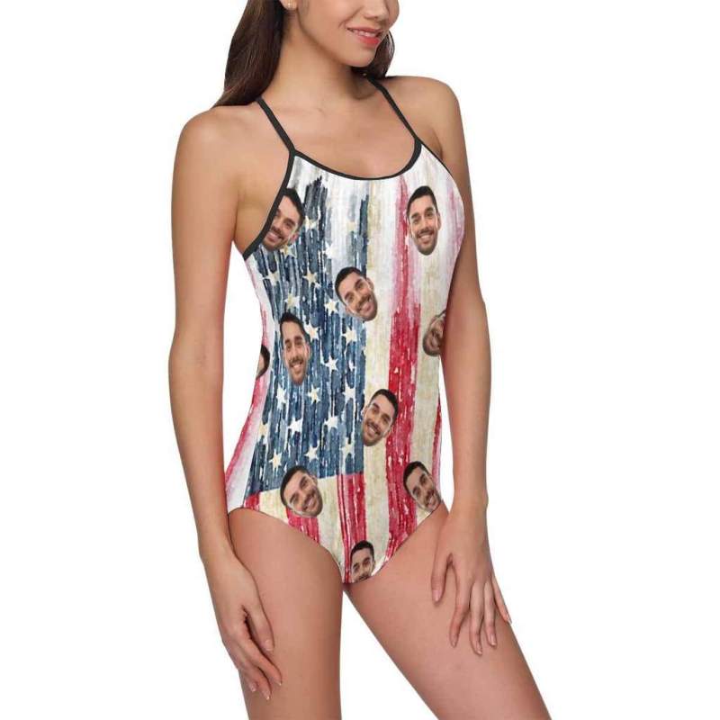 Custom Face Swimwear Women's Photo Slip One Piece Swimsuit- Artistic USA Flag