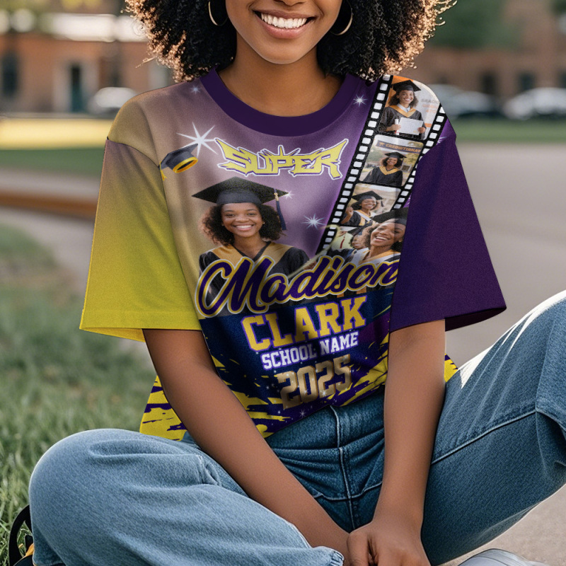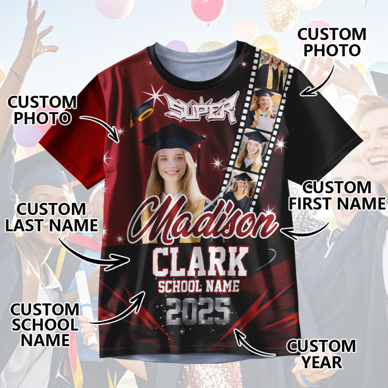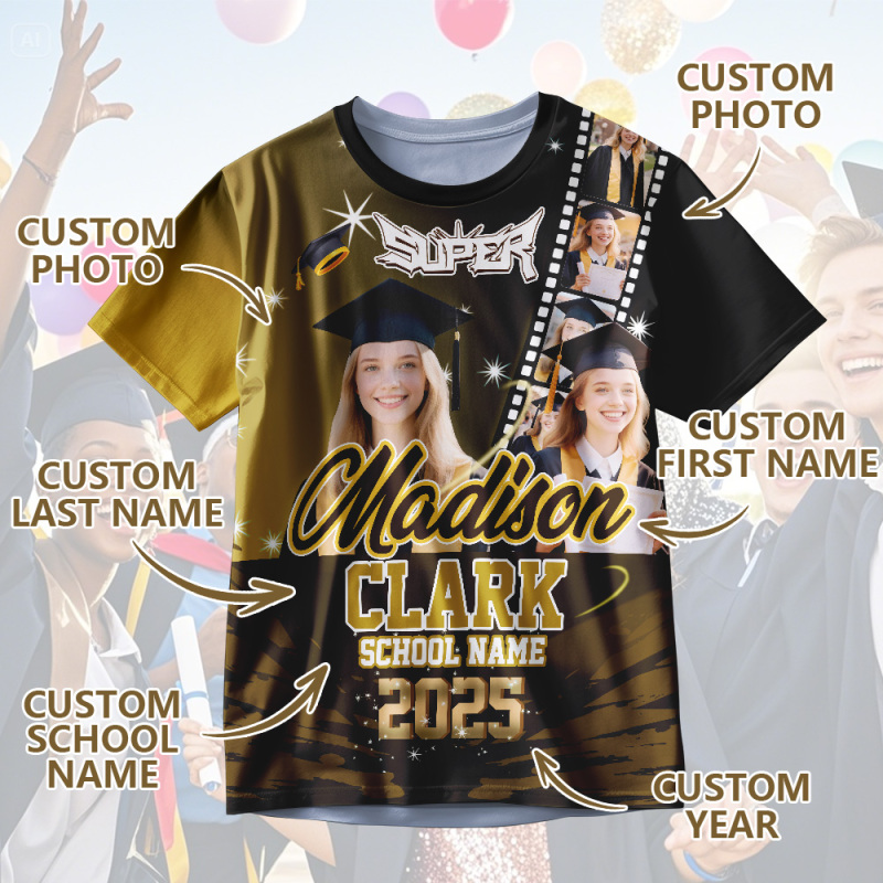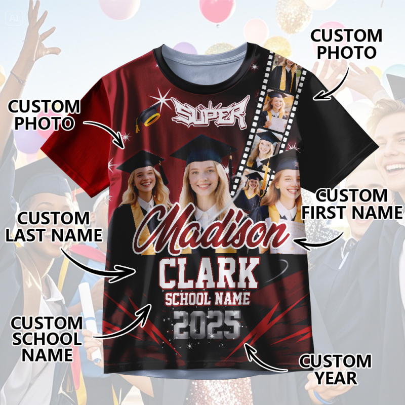 Custom Graduation T-Shirts Personalized All Over Print Shirt with Photo Graduation Party Gift