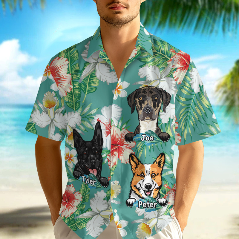 Custom Hawaiian Shirts Best Dog Dad Ever Tropical Beach Vibe Birthday Summer Gift Personalized Pet Lovers Hawaiian Shirts Vacation Gifts