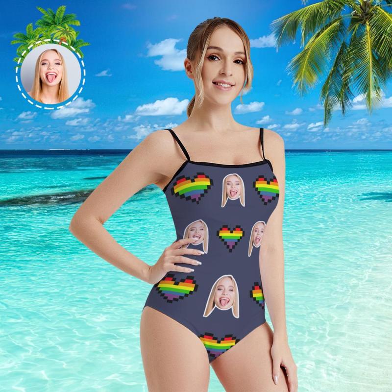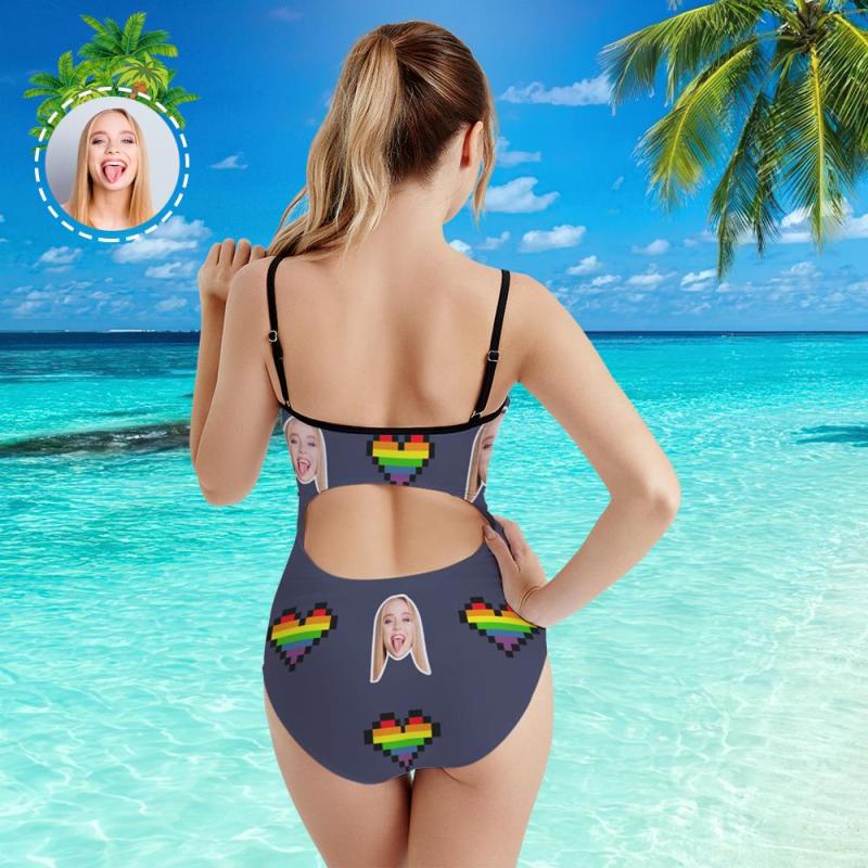 Custom Head Photo and Heart Women's One Piece Swimsuit