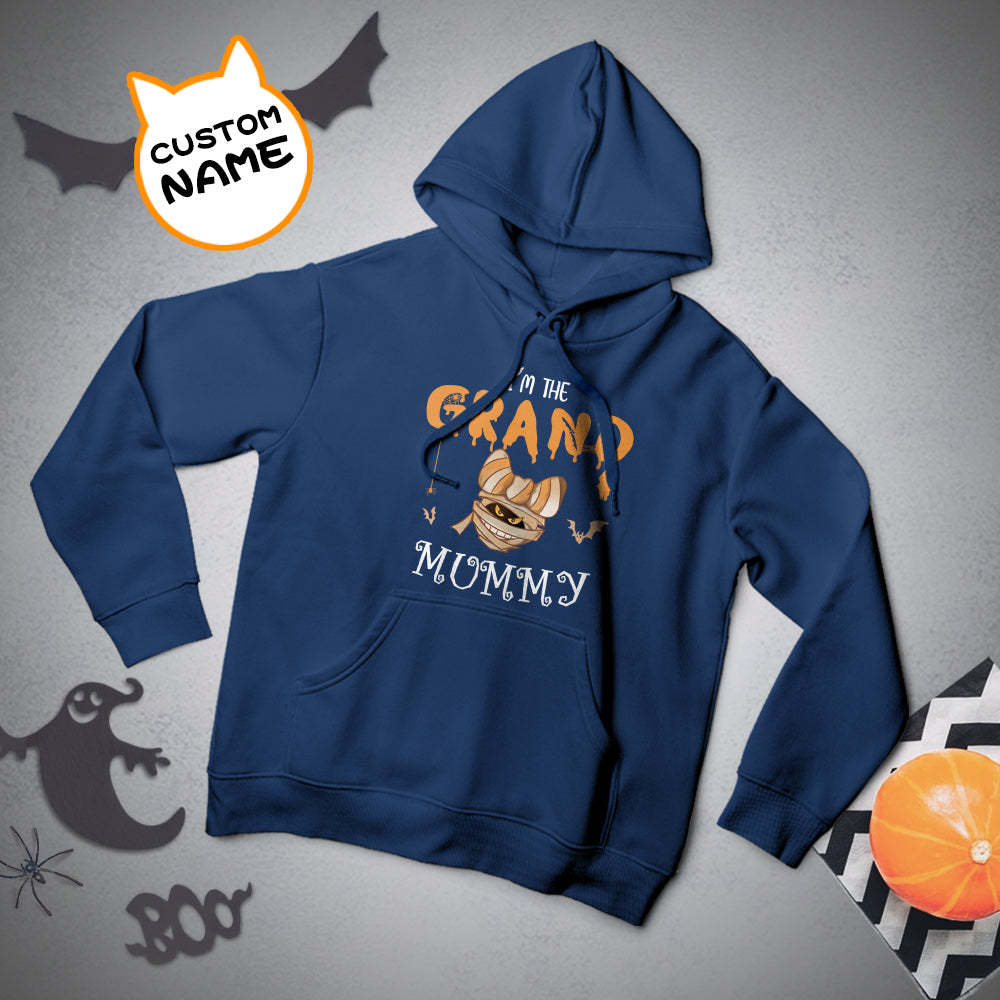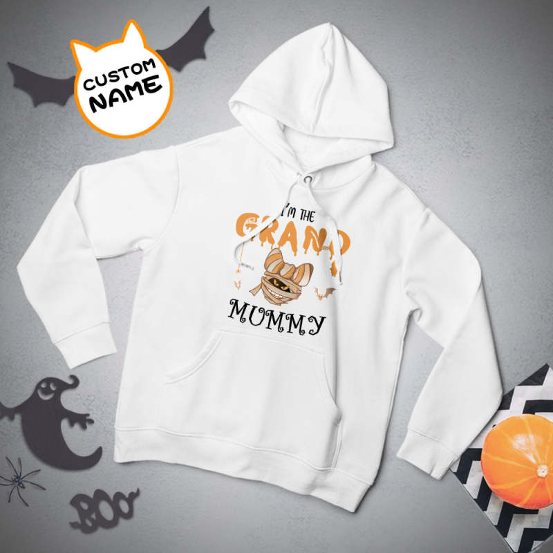 Custom Hoodie Long Sleeve Pullover Men's Hoodie Sweatshirt with Text Halloween Gift - Mummy