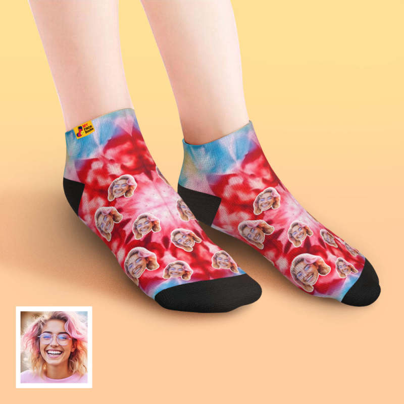 Custom Low Cut Ankle Face Socks Ice Dyed Pink Blue