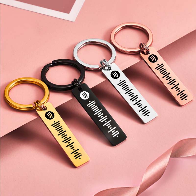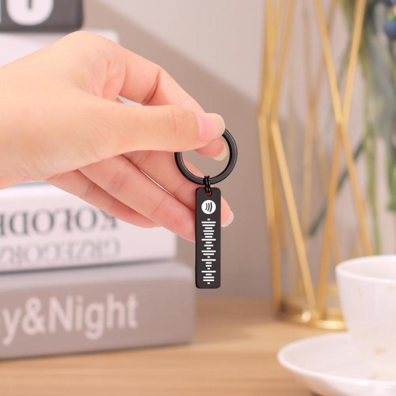 Custom Music Spotify Code Keychain Stainless Steel Silver The Best Holiday Gift for Him