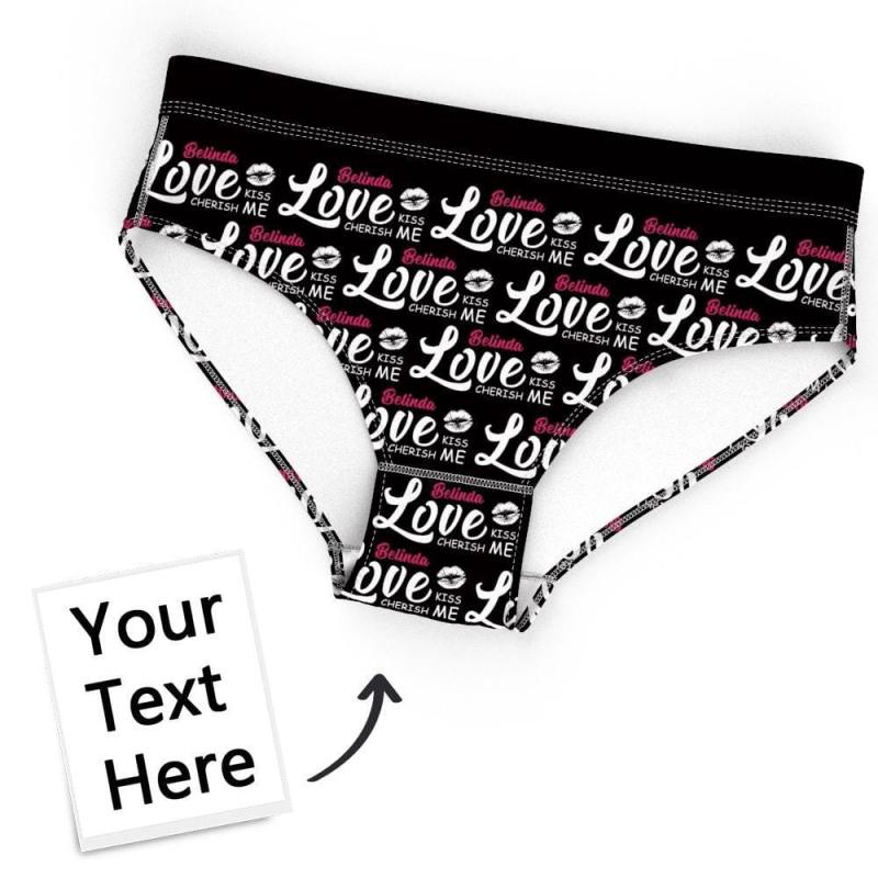 Custom Name On Love Panties Women Kiss Photo Underwear