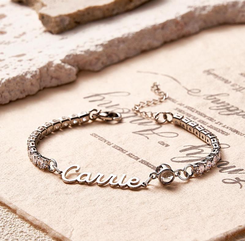 Custom Name Tennis Bracelets Photo Projection Fashionable All Diamonds Bracelet Gifts For Her