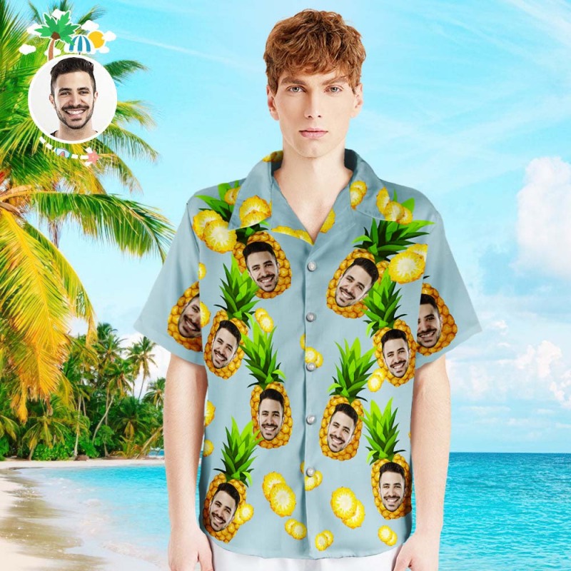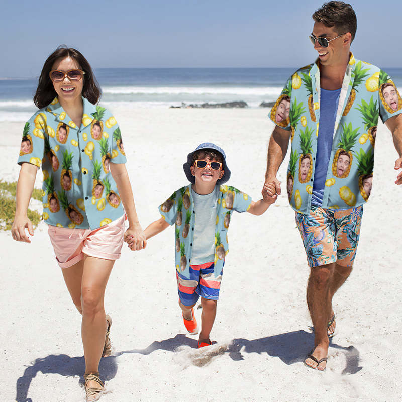Custom Photo Hawaiian Shirt Parent-child Wears Personalised Face Hawaiian Shirt Gift Big Pineapple