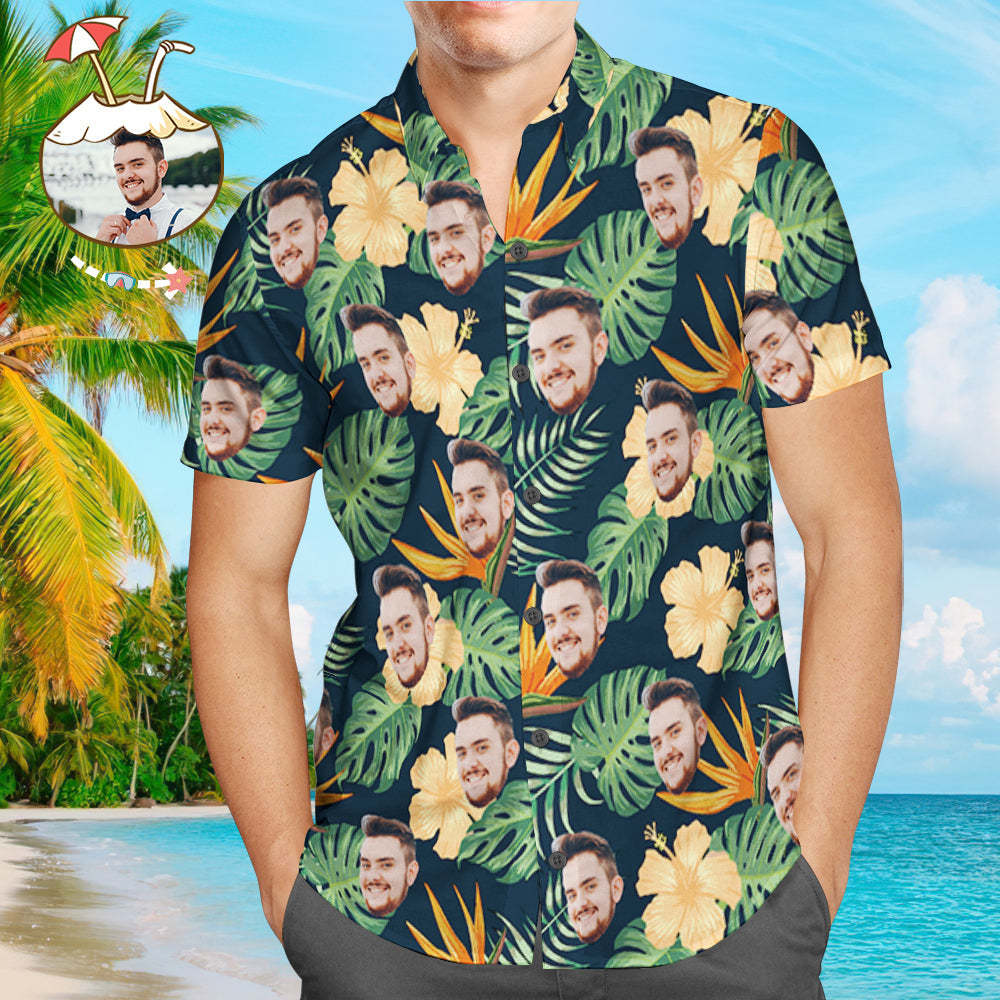 Custom Photo Hawaiian Shirt Parent-child Wears Personalised Face Hawaiian Shirt Gift for Family - Yellow Flowers