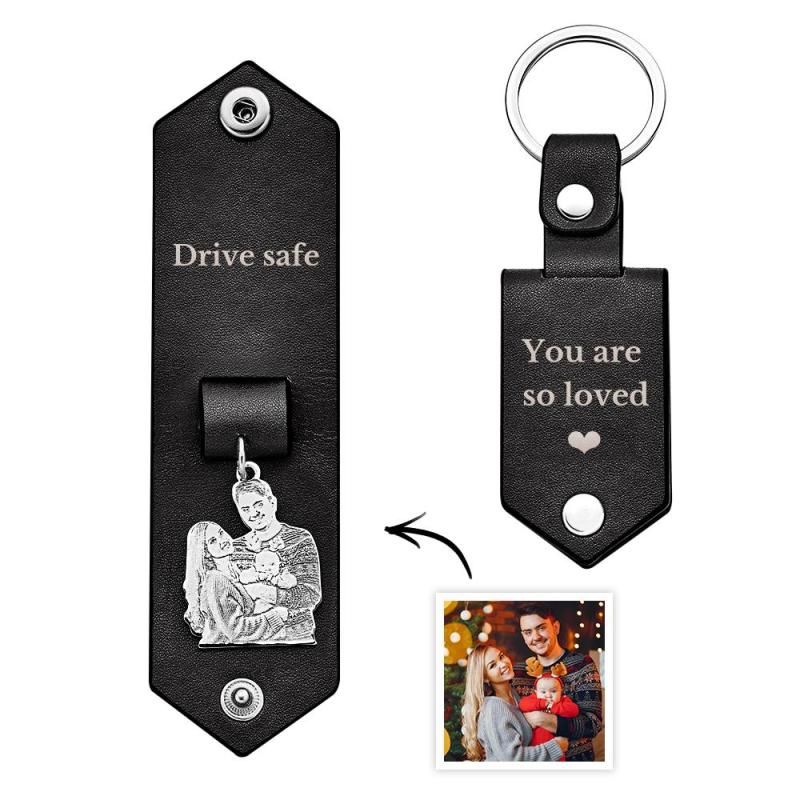 Custom Photo Leather Keychain With Text Annivesary Gifts For Men