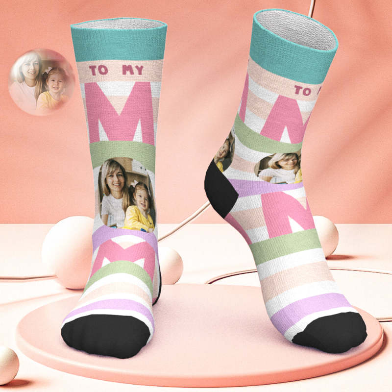 Custom Photo Socks Personalized Pink Photo Socks Gifts to My Mom - Mother's Day Gifts