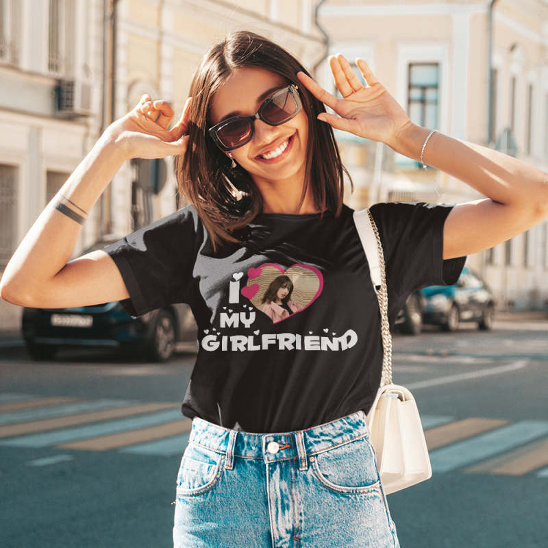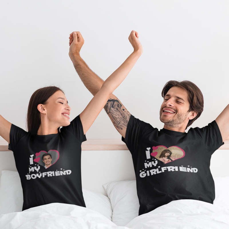 Custom Photo T-Shirt I Love My Girlfriend/Boyfriend Personalized Couple T-shirt Pink Heart