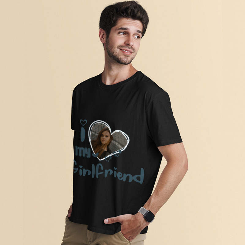 Custom Photo T-Shirt Personalized Couple T-shirt Blue Heart I Love My Girlfriend/Boyfriend