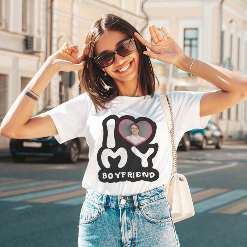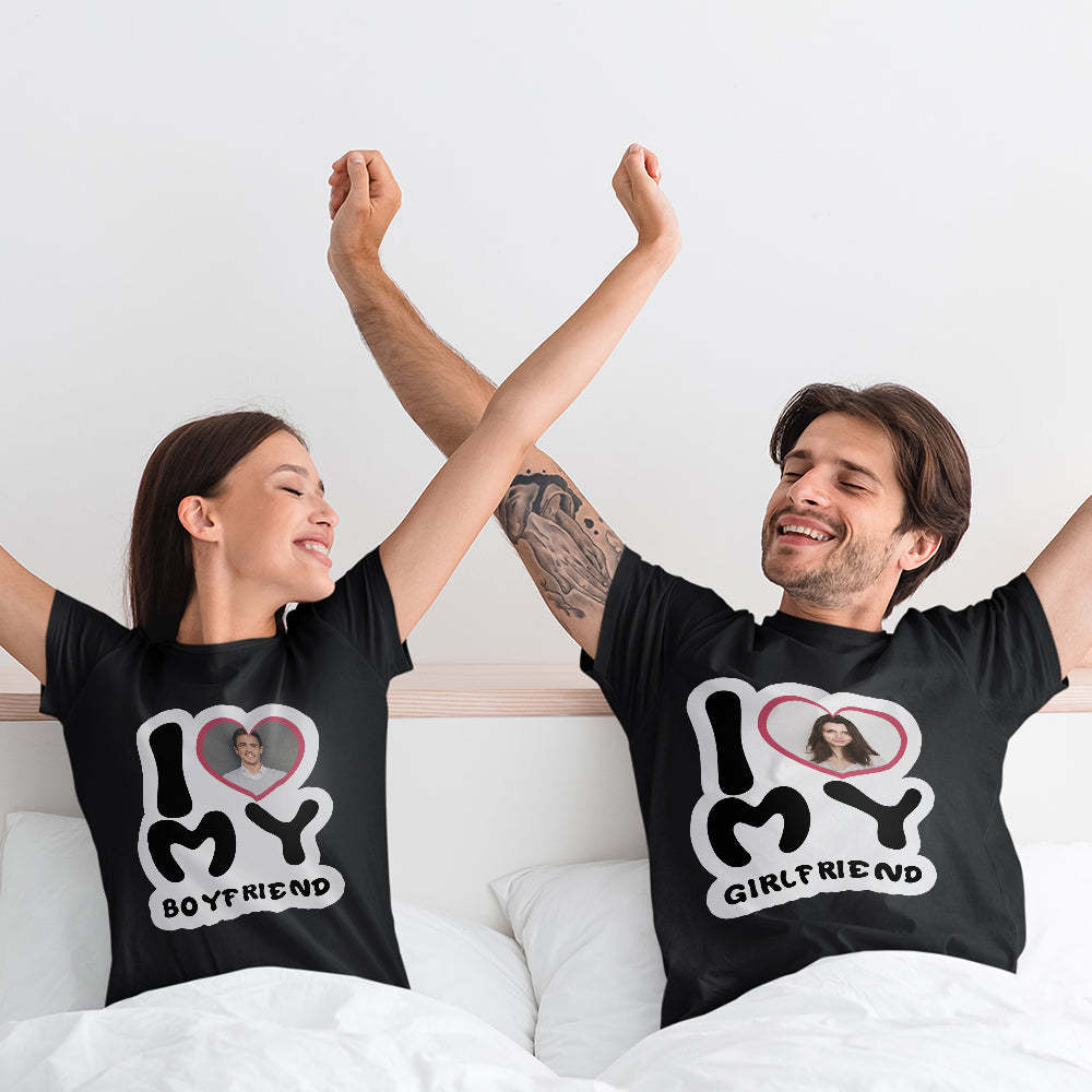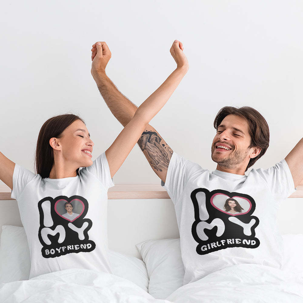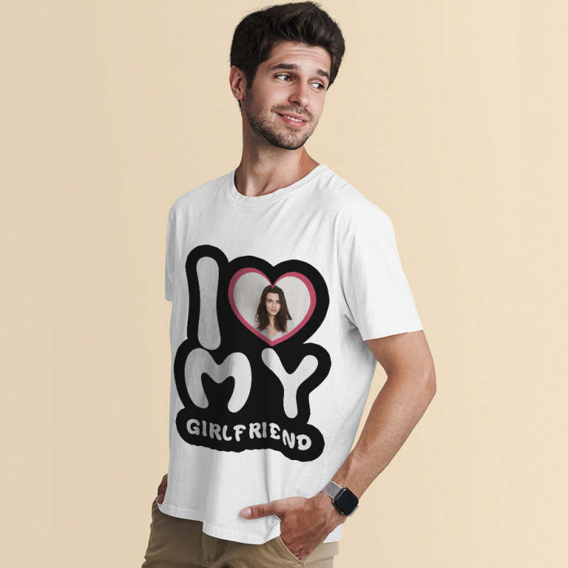 Custom Photo T-Shirt Personalized Couple T-shirt I Love My Girlfriend/Boyfriend