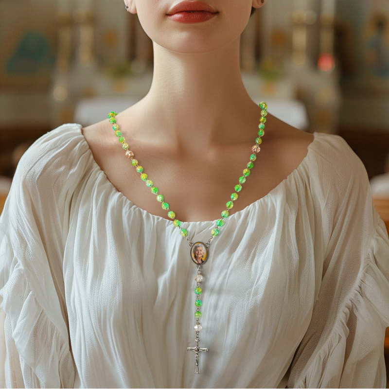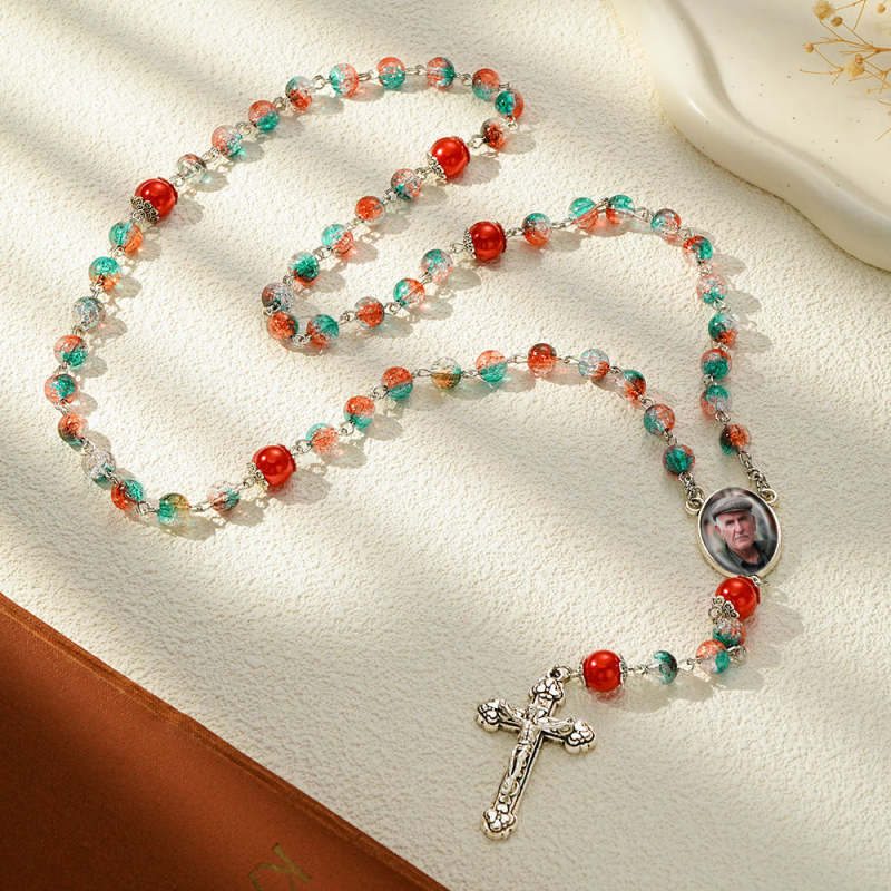 Custom Rosary Beads Cross Necklace Personalized Acrylic Explosion Beads Long Style Necklace with Photo