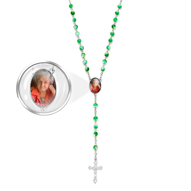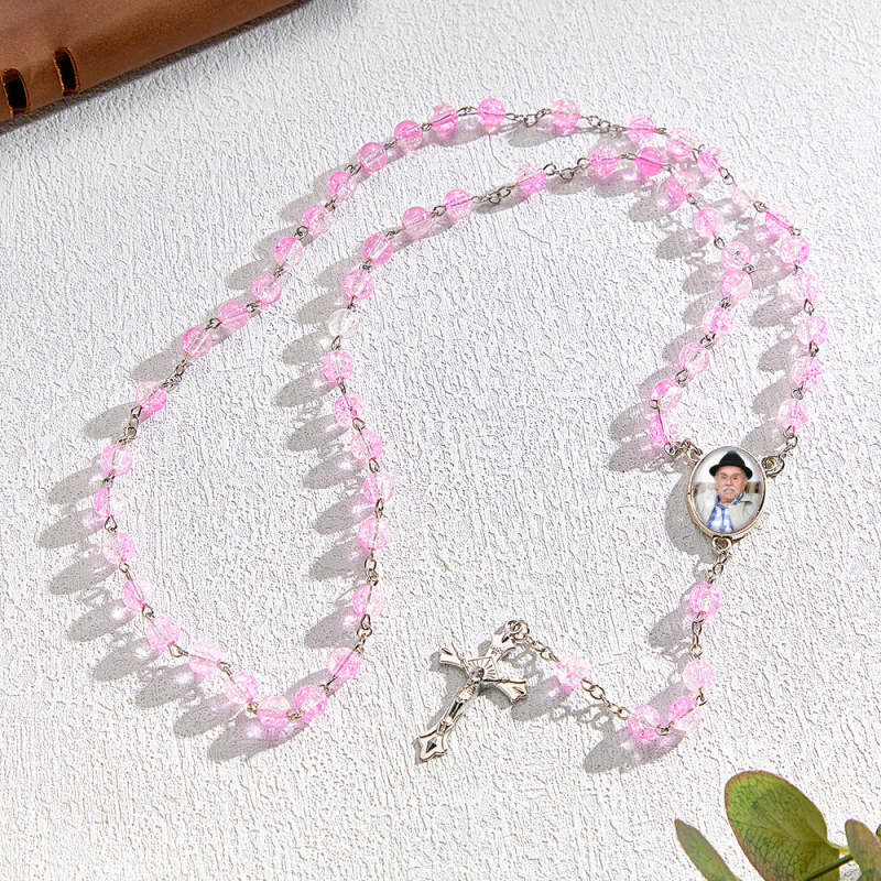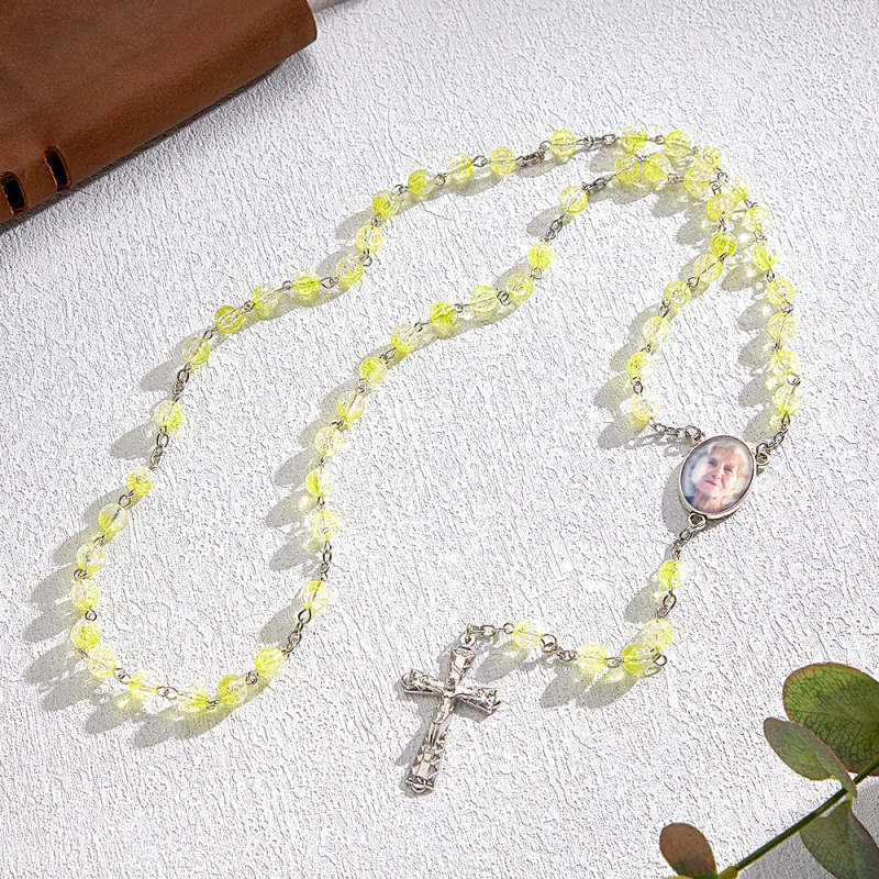 Custom Rosary Beads Cross Necklace Personalized Acrylic Explosion Beads Necklace with Photo