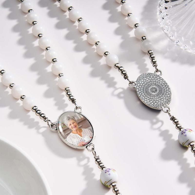 Custom Rosary Beads Cross Necklace Personalized Ceramic Rose Necklace with Photo