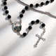 Custom Rosary Beads Cross Necklace Personalized Glass Imitation Pearls Necklace with Photo
