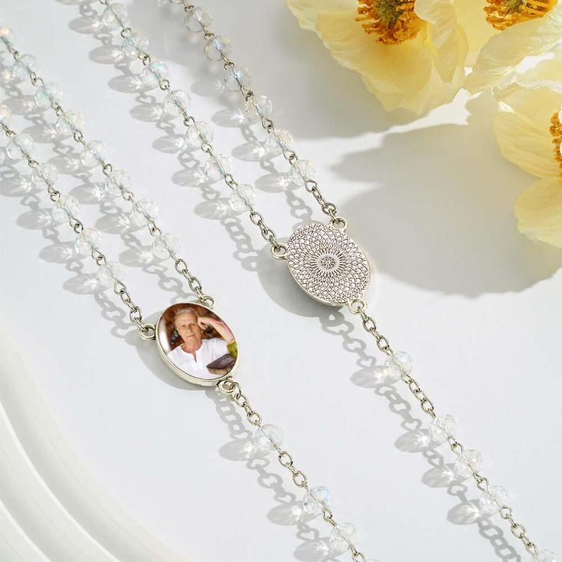 Custom Rosary Beads Cross Necklace Personalized White Color Plated Crystal Beads Necklace with Photo