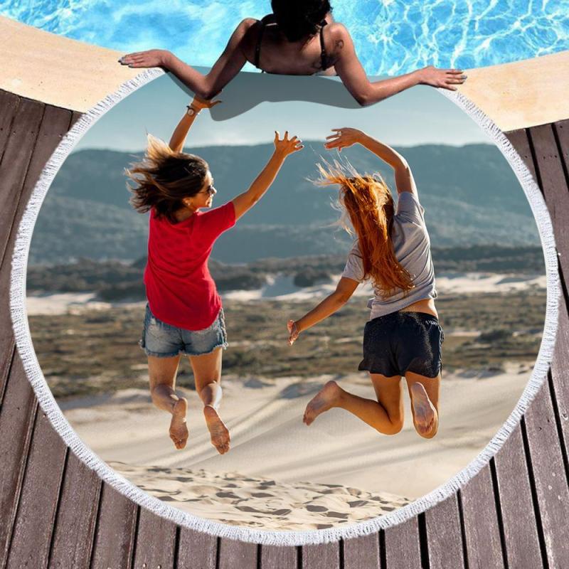 Custom Round Photo Towel Unique Gift Tassel Beach Mat for Friends