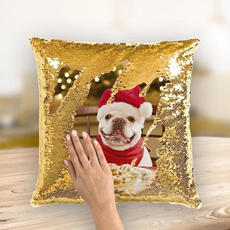 Custom Photo ChristmasMagic Sequins Pillow Multicolor Shiny 15.75*15.75