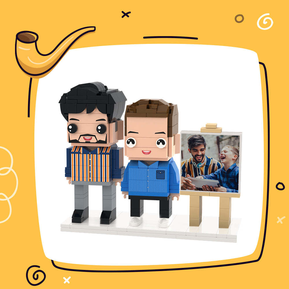 Father's Day Gift Full Body Customizable 2 People Photo Frame Custom Brick Figures Small Particle Block Gifts for Dad